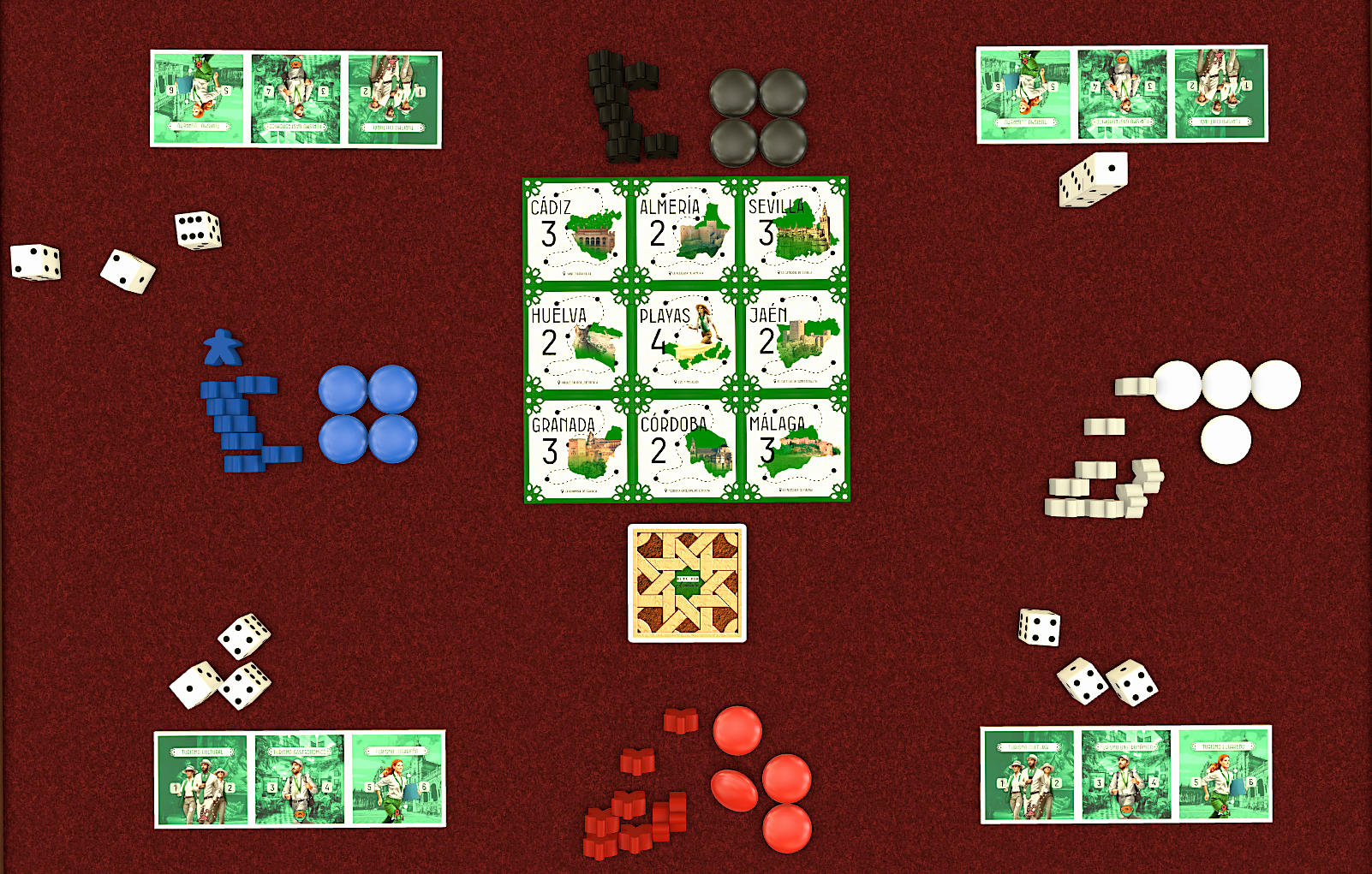 Lidera una empresa experta en turismo por toda Andalucía en un tablero 3×3. Manda primero a tus agentes y, cuando tengas suficiente presencia, monta una agencia turística. Ganará quien forme primero 3 en raya. Pero cuidado: las fichas que controlas están compartidas con otros jugadores, por lo que deberás estar pendiente de no favorecerles.